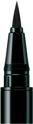 Mit schwarzem Flüssigeyeliner wird ein langer und am äußeren Ende leicht nach oben verlaufender Lidstrich gezogen, der mit einem schaurigen Dreizack endet.