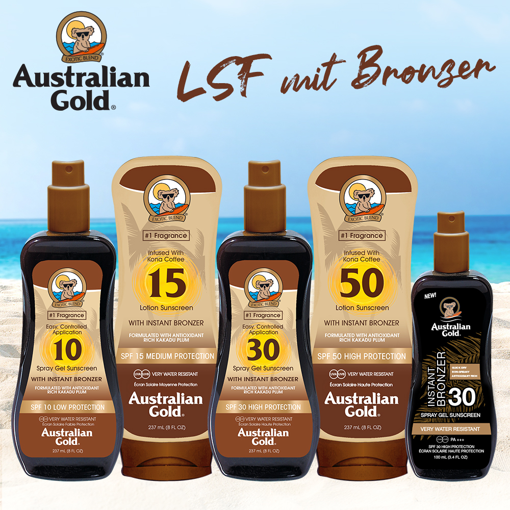 Australian Gold: Sonnenschutz-Produkte mit Bronzer
