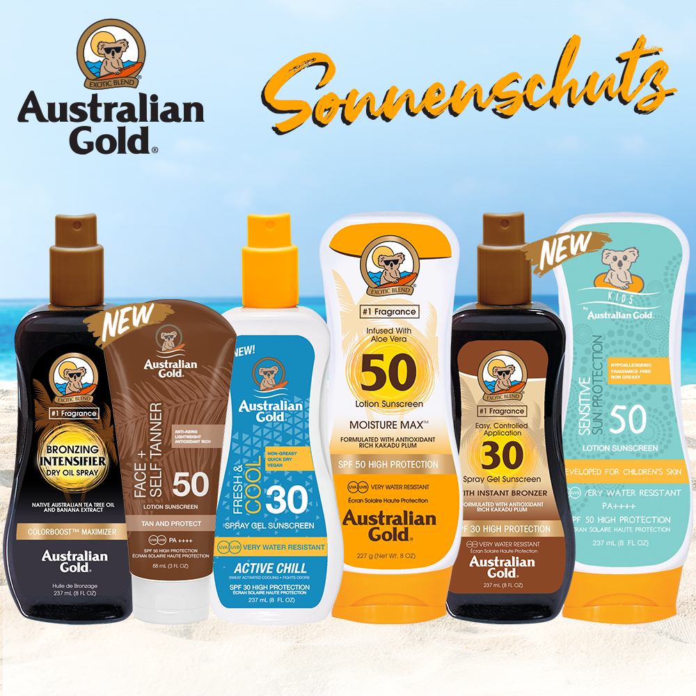 Doch ganz unvorbereitet wollen wir nicht in die schönste Zeit des Jahres starten: Sonnenschutz ist ein wichtiges Thema. So auch für Australian Gold, der weltweiten Nummer 1 im Bereich Suncare. Australian Gold – das ist Sonnenpflege auf höchstem Niveau!